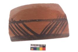 | Description / विवरण | Specimen of potsherd with black decorative geometric painting. |