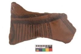 | Description / विवरण | Specimen of potsherd with black decorative geometric painting. |