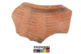 | Description / विवरण | Specimen of potsherd with decorative geometric painting. Type Black on Red Ware . |