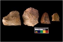 | Description / विवरण | Specimen of fluted cores showing impressions of blades removed from almost all the sides. |