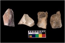| Description / विवरण | Specimen of fluted cores showing impressions of blades removed from almost all the sides. |