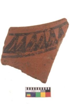 | Description / विवरण | Specimen of potsherd with black decorative geometric painting. |