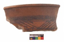 | Description / विवरण | Specimen of potsherd with black decorative geometric Linear painting, Type Black on Red Ware . |