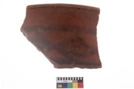 | Description / विवरण | Specimen of potsherd with black decorative geometric painting . |