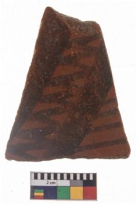 | Description / विवरण | Specimen of potsherd with black decorative geometric painting . |