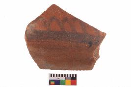 | Description / विवरण | Specimen of potsherd with black decorative geometric painting, Type Black on Red Ware . |