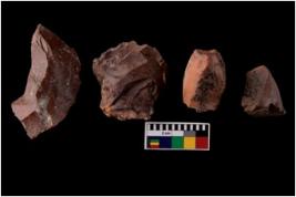 | Description / विवरण | Specimen of fluted cores showing impressions of blades removed from almost all the sides. |