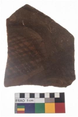 | Description / विवरण | Specimen of potsherd with black decorative geometric painting . |