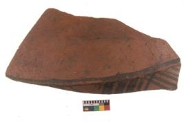 | Description / विवरण | Specimen of potsherd with black decorative geometric painting. |