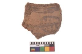 | Description / विवरण | Specimen of black on red ware with black decorative geometric painting. |