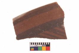 | Description / विवरण | Specimen of potsherd with black decorative geometric Linear painting, Type Black on Red Ware . |