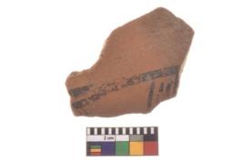 | Description / विवरण | Specimen of black on red ware with black decorative Parallel lines geometric painting. |