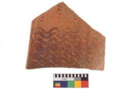 | Description / विवरण | Specimen of potsherd with decorative geometric painting. Type Black on Red Ware . |