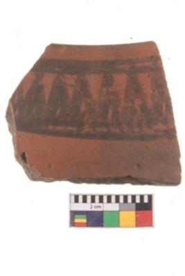 | Description / विवरण | Specimen of potsherd with black decorative geometric painting. |