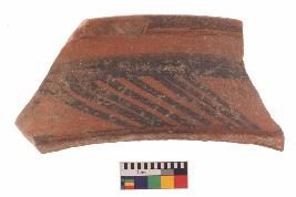 | Description / विवरण | Specimen of potsherd with black decorative geometric Linear painting, Type Black on Red Ware . |