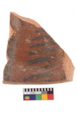 | Description / विवरण | Specimen of potsherd with decorative geometric painting. Type Black on Red Ware . |