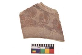 | Description / विवरण | A specimen of a potsherd. It is reddish in colour with black decorative geometric painting on it. |