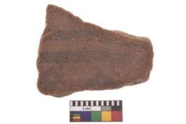 | Description / विवरण | Specimen of black on red ware with black decorative Lattice pattern geometric painting. |