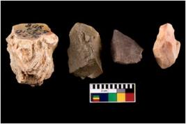 | Description / विवरण | Specimen of fluted cores showing impressions of blades removed from almost all the sides. |