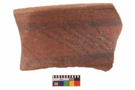 | Description / विवरण | Specimen of potsherd with black decorative geometric Linear painting, Type Black on Red Ware . |