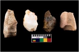 | Description / विवरण | Specimen of fluted cores showing impressions of blades removed from almost all the sides. |