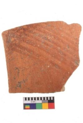 | Description / विवरण | Specimen of potsherd with decorative geometric painting. Type Black on Red Ware . |