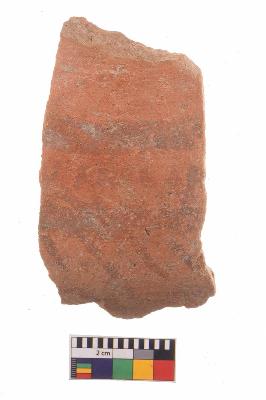 | Description / विवरण | Specimen of potsherd with black decorative geometric Linear painting, Type Black on Red Ware . |