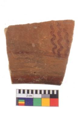 | Description / विवरण | Specimen of potsherd with decorative geometric painting. Type Black on Red Ware . |