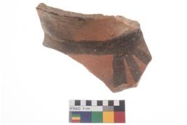 | Description / विवरण | Specimen of potsherd with black decorative geometric painting . |
