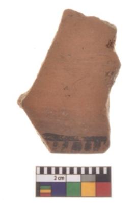 | Description / विवरण | Specimen of black on red ware with black decorative Parallel lines geometric painting. |