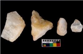| Description / विवरण | Specimen of a cores with several broad fluted marks. Some of them have sharp edges. |