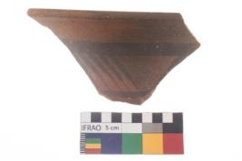 | Description / विवरण | Specimen of potsherd with black decorative geometric painting . |