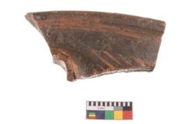| Description / विवरण | Specimen of potsherd with black decorative geometric painting. |