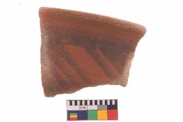 | Description / विवरण | Specimen of potsherd with black decorative geometric Linear painting, Type Black on Red Ware . |