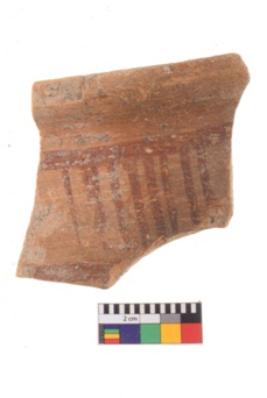 | Description / विवरण | Specimen of potsherd with decorative geometric painting. Type Black on Red Ware . |