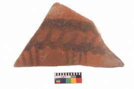 | Description / विवरण | Specimen of potsherd with black decorative geometric painting, Type Black on Red Ware . |