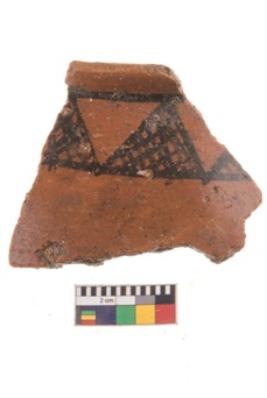 | Description / विवरण | Specimen of potsherd with black decorative geometric painting. |