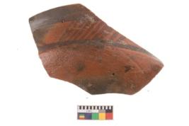 | Description / विवरण | Specimen of potsherd with black decorative geometric painting. |