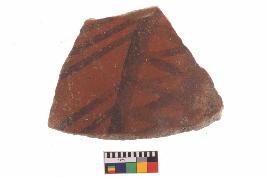 | Description / विवरण | Specimen of Potsherd black on red painted pottery. It is fine fabric in sharp contrast with painted design are executed in black pigment. |