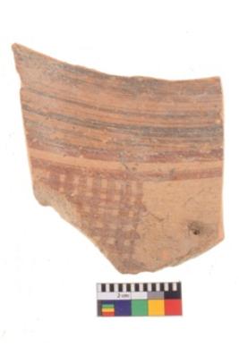 | Description / विवरण | Specimen of potsherd with decorative geometric painting. Type Black on Red Ware . |