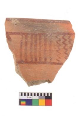 | Description / विवरण | Specimen of potsherd with decorative geometric painting. Type Black on Red Ware . |