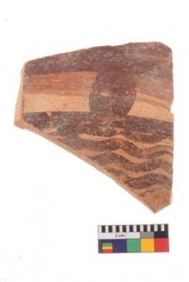 | Description / विवरण | Specimen of potsherd with decorative geometric painting. Type Black on Red Ware . |