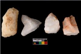 | Description / विवरण | Specimen of a cores with several broad fluted marks. Some of them have sharp edges. |