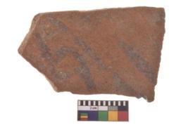 | Description / विवरण | Specimen of black on red ware with black decorative Parallel wavy lines geometric painting. |