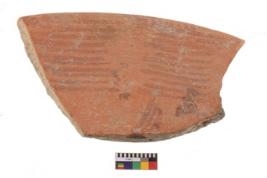 | Description / विवरण | Specimen of potsherd with decorative geometric painting. Type Black on Red Ware . |