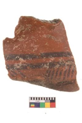 | Description / विवरण | Specimen of potsherd with black decorative geometric painting. |