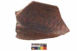 | Description / विवरण | Specimen of potsherd with black decorative geometric painting, Type Black on Red Ware . |