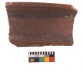 | Description / विवरण | Specimen of potsherd with black decorative geometric Linear painting, Type Black on Red Ware . |