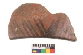 | Description / विवरण | Specimen of potsherd with black decorative geometric painting. |