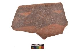 | Description / विवरण | Specimen of black on red ware with decorative geometric Latticed loops set in two horizontal bands painting. |